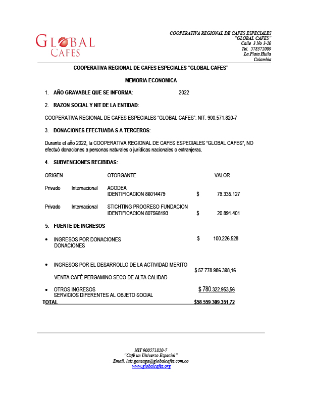 Memoria Económica Global Cafes 2022