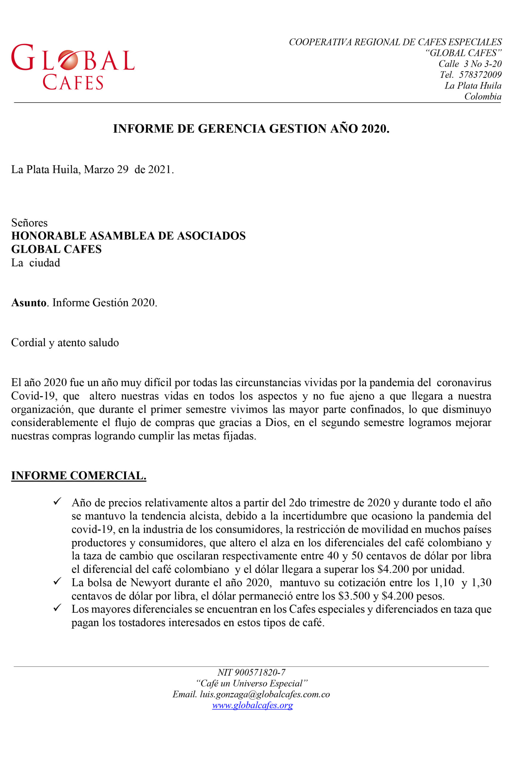 Informe de Gerencia Gestión 2020