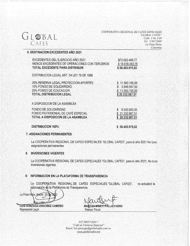 Memoria Económica Global Cafes 2021